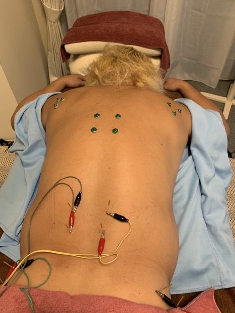 - 腰にはピンポイントで電気の鍼。