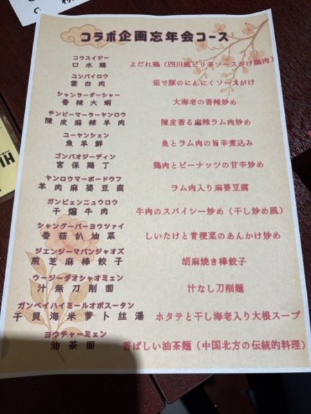この日は僕がいつも行っている秋葉原の「香福味坊」とのコラボメニューがコースで出てくるという、夢のような企画。