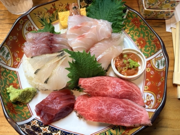 海鮮丼(という名称だった)最高!右手前は牛肉でこれも最高!
